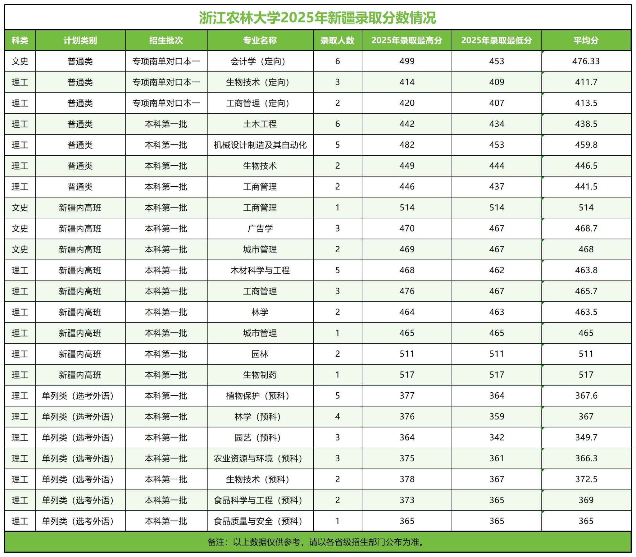 浙江农林大学2025年分类型分专业录取情况(浙江)